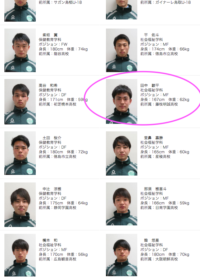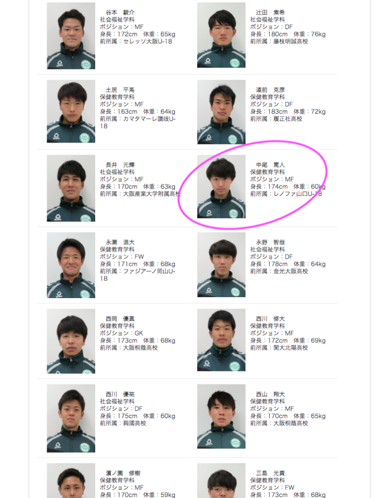 選手リスト、大学サッカー部HPよりお借りしました。