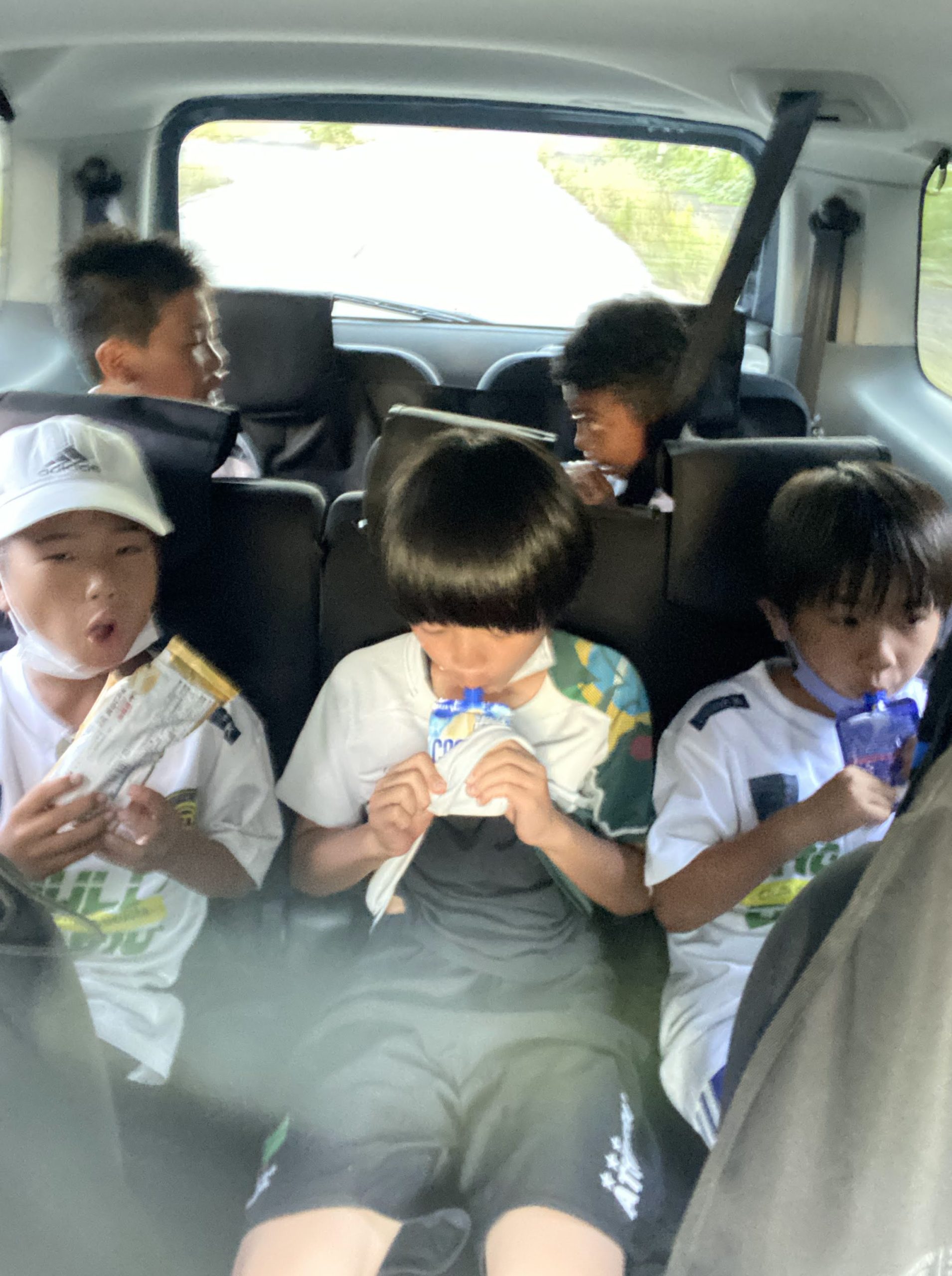 いつもは車で家から会場まで送迎してもらっている子供達も、宿泊や試合の荷物、水筒、ボールまで持って歩いてピッチと宿舎の往復。